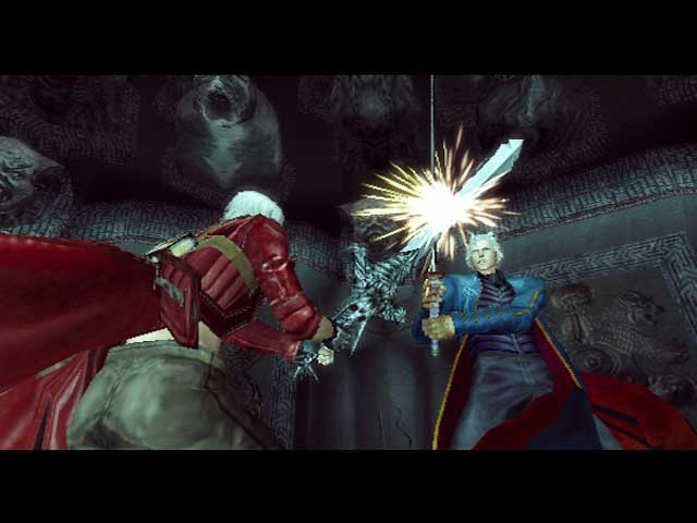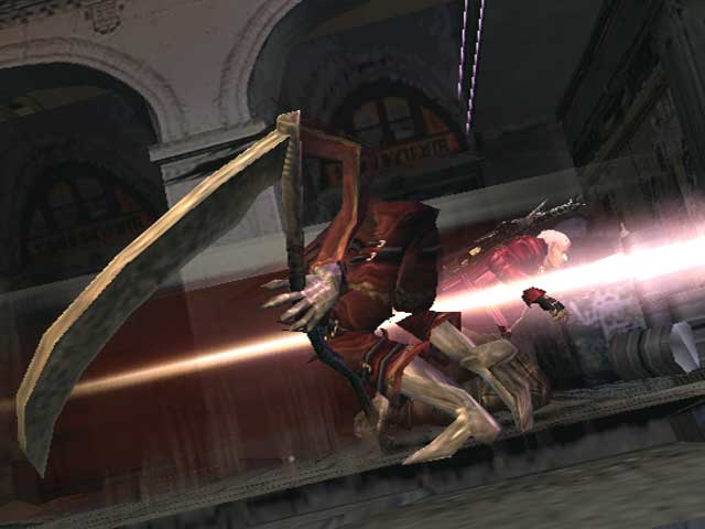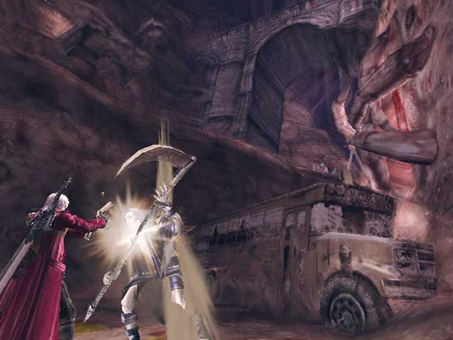Gameplay is similar to the previous entries in the series, albeit with a few new additions. Anyone who has played the previous games will be able to pick this one up with no problem; whereas you’re able to slash out combos with your sword or keep your distance with Dante’s guns. You get more perks the higher your combos go, which are measured alphabetically from a meager “dope” to the all-too-pimpin’ “stylish”. You’ll constantly find yourself surrounded by hordes of demonic goons, so linking combos is usually not a problem, especially when you follow good combos up with a cocky taunt. The bottom line here is that you are rewarded for style. You’ll collect red souls off dead fiends that can be used as currency at the nearest divinity statue to buy items, upgrade your guns, and gain extra abilities. You’ll also get an assortment of weapons in addition such as nun chucks made of ice, a guitar, and dual swords that have the powers of fire and wind, as well as the usual assortment of guns like the shotgun and a demonic gun equipped with a laser that will lock onto multiple enemies at once.