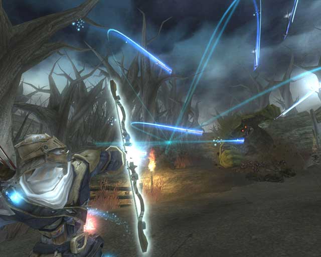 The controls are translated well to the PC and use a standard WASD and mouse configuration to walk and look around. Combat is simple to pick up where you can lock on to a target by hitting the space bar and attack by clicking the left mouse button. Multiple clicks of the left mouse button will let you perform combos that will build up your combat multiplier for increased damage and experience points as long as you don’t get hit. A successive number of hits will cause your weapon to glow which will allow you to deal out a pretty powerful attack that can’t be blocked. Holding down the left shift key will bring up your spell menu where you can scroll through your available spells and cast them with the right or left mouse button. You can also drag the spells around on the grid so that your favorite spells will always be readily available. You can easily switch between ranged and melee weapons by hitting the E and Q keys which is handy when you’re taking shots at enemies that are running towards you with the bow and need to quickly switch to your melee weapon. Of course, the enemies will perform the same tactics to you as well in a brilliant stroke of artificial intelligence.