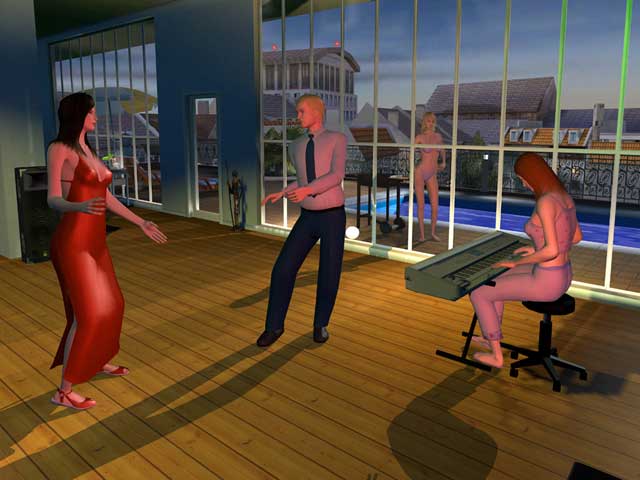As I stated earlier, the game’s visuals are nearly identical to the previous installment, and while they still look good, The Sims 2 has it looking pretty dated. The same kinds of clipping issues are here with characters magically shoving hands through each other, themselves, and the blankets in their bed. Models look great, especially the women in all their full frontal glory, though strangely enough, men have been censored on this go around. It sounds fishy for a German developer, especially since they’re not supposed to have any qualms with their sexuality. While the models are designed nicely, they seem devoid of any kind of life at all, especially in the case of the women who sport funny shaped breasts and resemble plastic dolls more often than real people. In this post Dead or Alive 3 world, boobies should have more jiggle. No matter what acts they’re engaging in, characters are all animated the same and seem wooden and awkward while they’re at it as well.