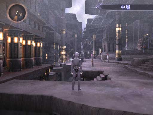 effects, even after being upgraded by a few levels. The environment backdrops are beautiful but not overly detailed but adds a certain element of angst to the game- being that the world you're living in is called the "Junkyard", the style is appropriate dark and grey. The game plays out in a behind the player view and you have the ability to rotate the camera left or right, depending on where your character is on the screen. This can be annoying though as all the camera work while in exploring the game world is manual so you have to change the camera when your character turns around the corner. In enemy areas when you encounter an enemy, the screen breaks away in little octagonal panels to reveal the combat view where the camera automatically shifts to give the player the best view of the battle action.