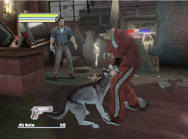 Dead to Rights II focuses on a cop named Jack Slate, who has an inexplicable habit of crashing cars into things, is investigating the kidnapping of a well known judge. Jack’s search will take him and his dog, Shadow to a few different, yet similarly designed locales against the gangs responsible for the kidnapping. Don’t expect much in terms of storyline, however, as Jack tends to let his gun do the talking.