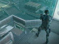 Obviously the game looks eons better than its Playstation counterpart. Owners of MGS 2 will notice this game looks about the same, which isn't a bad thing at all, since MGS 2 has been considered a graphical masterpiece on the PS2 and even after two years it sill holds up well. You'll also be treated to some more dramatic, and obviously Matrix inspired, fight scenes before and after boss battles that weren't around in the original game. Though all the environments are indoors, they never look the same and are broken up by some small outdoor areas. One noteable graphical issue is that you'll