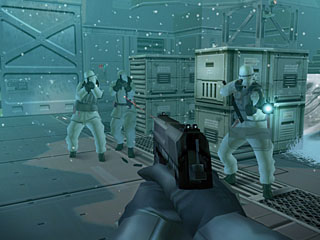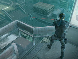 Obviously, Snake won't be empty handed during his mission. Though he starts out with only punches and kicks, he can get his hands on a variety of weapons like SOCOMs, machine guns, greneades, remote controlled Nikita missles and stinger missile launchers. Gamecube owners also have the addition of the M9 tranquilizer gun and the PSG 1T tranquilizer sniper rifle from Metal Gear Solid 2. He'll also have an assortment of equipment to help him out like thermal and night vison goggles and rations to restore health. You'll also get magazines to throw onto the floor to distract enemies a la MGS 2.