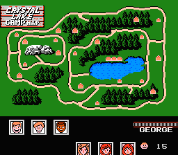 Rather than making a standard platformer with Jason as the final boss, the fine folks at Galoob/LJN opted to make a more true to movie experience with this game. The game takes place at camp Crystal Lake (the traditional backdrop of the movies before Jason supposedly took Manhattan) where you can control six camp counselors, each with their own strengths and weaknesses, as they try to survive three nights of pure, unadulterated HORROR! The counselors aren’t the only ones at risk because there are cabins full of kids that need to be rescued from Jason’s bloody mitts as well.