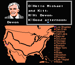 Sure, a game based off of Knight Rider may seem a little lame, but once you get past the almost ridiculous difficulty, it turns out to be a mildly enjoyable experience. Sure, the story is a little thin and contains at least one not-so-interesting plot twist and Michael Knight is nowhere to be found outside of a crude representation on the title screen, but anyone who owns an NES and likes games like Road Blasters might get a little enjoyment out of this one. Like a half hour tops. Even though the game fetures a free roam mode, it's really no exciting and really doesn't make any sense other than let you dodge pedestrian traffic. Even if you’re not a fan of the show, this game does little to represent it. If this review seems a little lean to you, the fact is there isn’t really much to this game, but then again, what else can you do with a TV show about a talking car anyways?